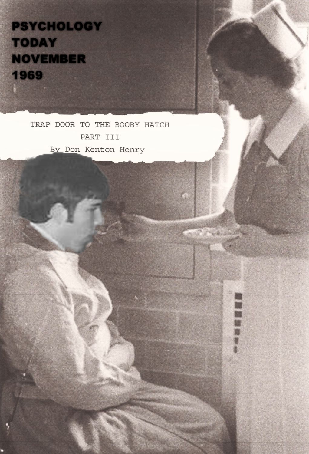 I was digging through an old footlocker I have carted around since a stint in military school my junior year of high school when I came across my scrap book from those prep school days. In it I found an copy of myself making the cover of Psychology Today. Seems I’m published after all. Well . . . in a dubious sort of way. The article documents another stint (or side trip) I took on the way to this life style of the rich and famous I now lead. Regardless, I thought it would make a good cover photo for my coming third installment of “Trap Door To The Booby Hatch”. What a’ ya think?